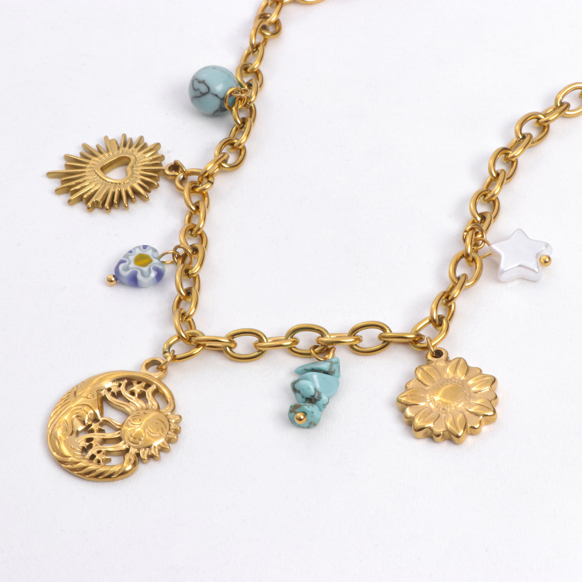 Dive into playful elegance with CAELII’s anti-tarnish Ocean Whimsy Charm Necklace. This statement piece features a bold gold chain adorned with ocean-inspired charms—delicate shells, starfish, pearls, and tiny sea creatures—bringing the spirit of the sea to your jewelery collection. Vibrant enamel accents add a splash of color and fun. Style it with flowy dresses or breezy casuals to channel effortless coastal vibes.