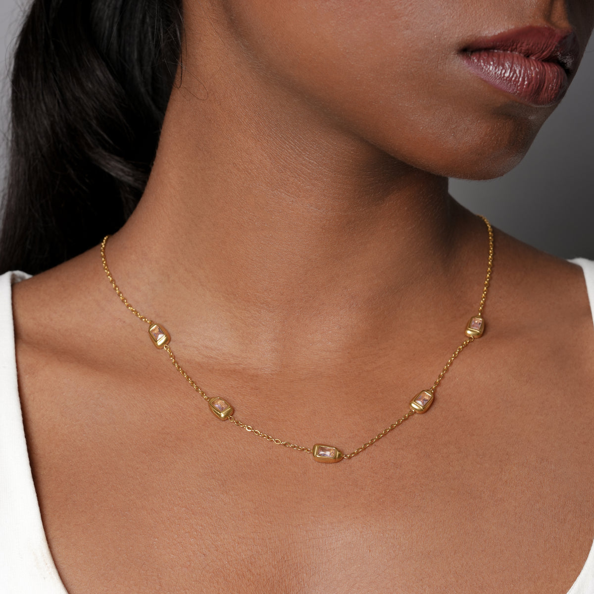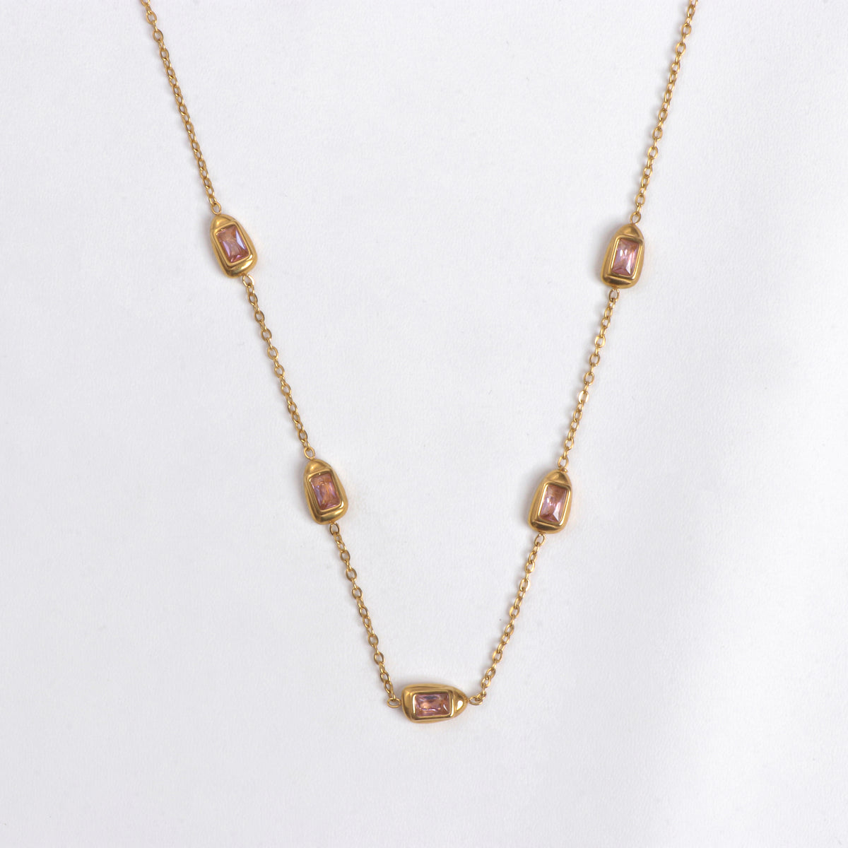 Set in anti-tarnish gold, the soft pink stones shimmer with effortless grace.
